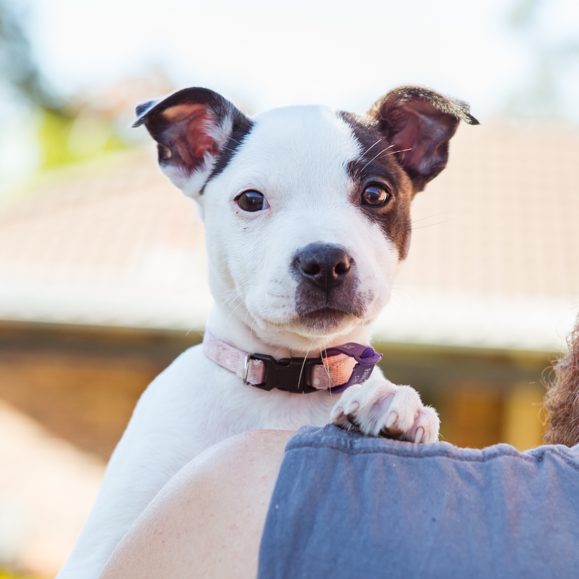 This sweet natured, outgoing little girl is on the search for her Forever home....Layla is a Staffy mix and although we are unsure what she is crossed with, we do believe that she will be a medium size dog when fully grown.