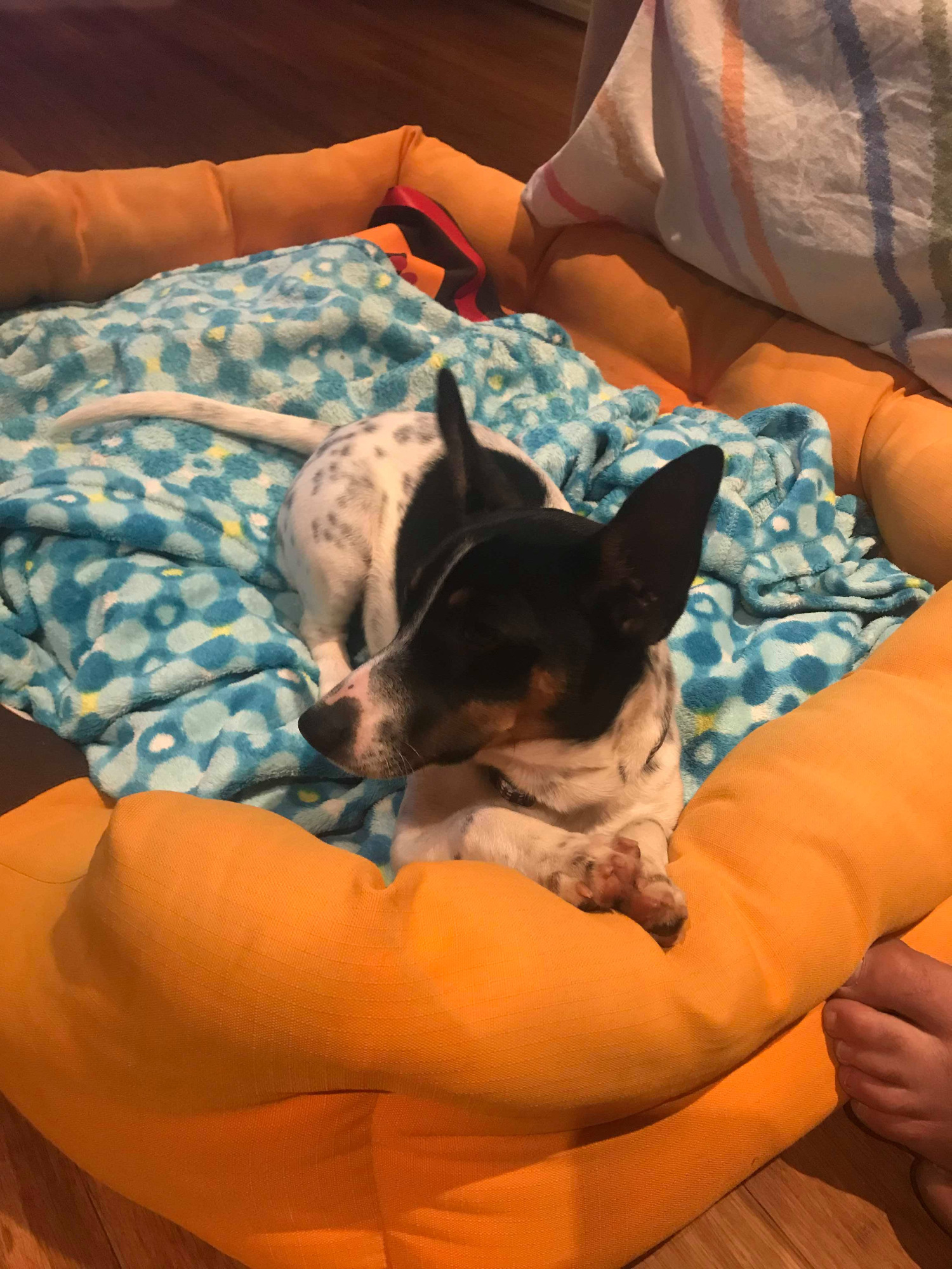 Atlas is currently residing in Canberra and is living with three small children and loves being around them. He is very tolerant of their crazy and loud behaviour and is always ready for a game and loves to play fetch and chasey. He has good recall and has shown no interest in escaping. Being a small dog he will need a secure yard to keep him safe. He is toilet trained and sleeps quietly inside through the night.