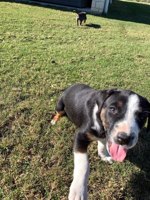 Trinity broke her leg at 12 weeks of age (unfortunately some rough play with her siblings occurred).