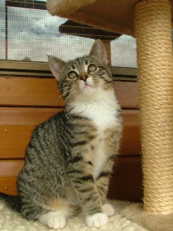 Lizzy is a sweet little affectionate kitten she even purred the whole time through her vet check up needles and all. Lizzy quickly settled into her foster home she gets on well with the foster carers own dogs and cats. Lizzy loves playing with children and getting involved in all the games. Lizzy is litter trained and she is ready to find her forever home. Please give her foster carer kay a call if you would like to give lizzy a home