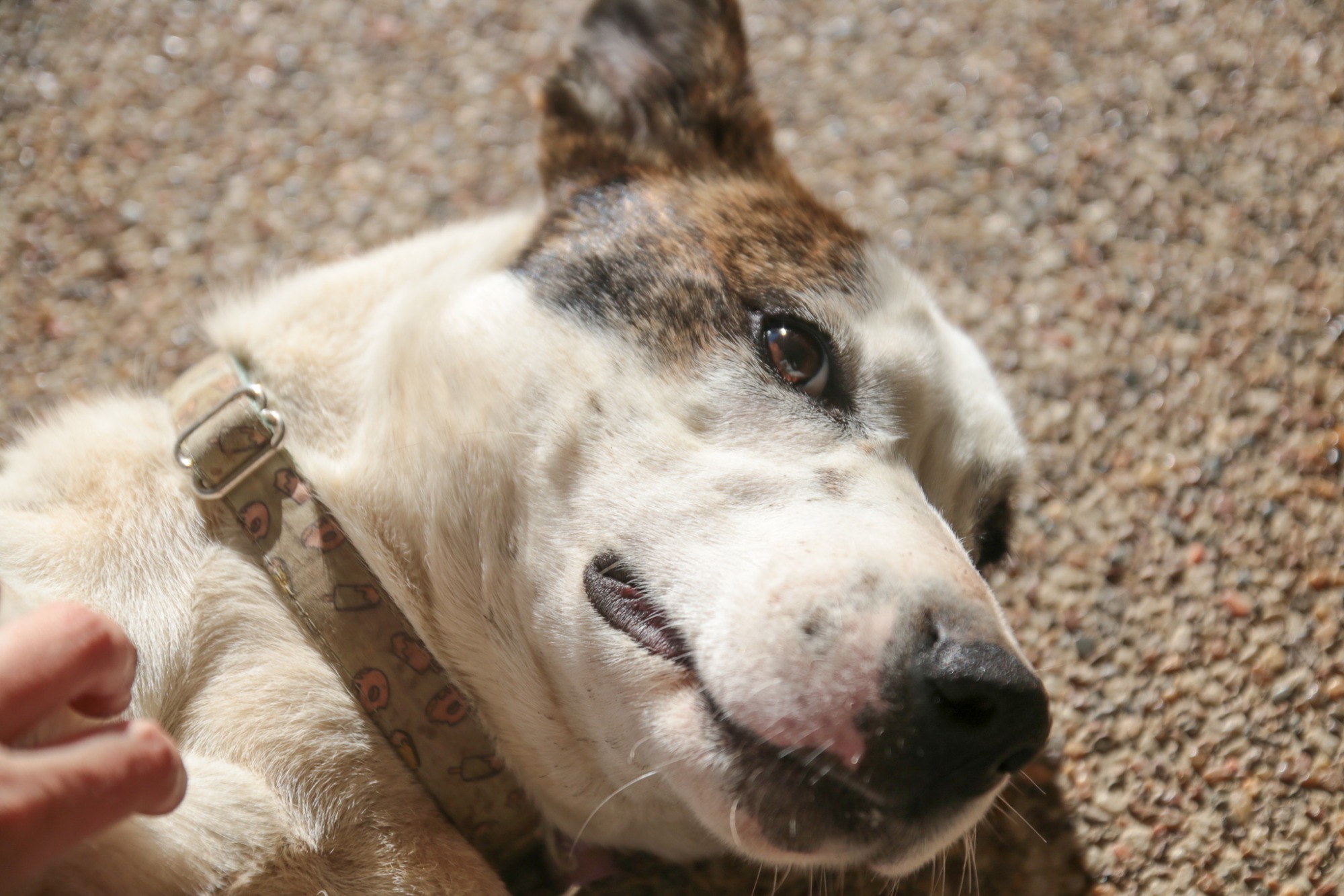 Lizzie thrives on attention and just wants to be with us. When we sit down with her, she is overjoyed and settles down on the grass next to us beautifully. She really does crave human company.