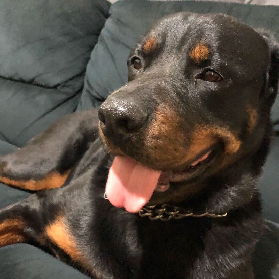 Rocko is a rockstar, just a big gorgeous lump of love. Rocko was the smallest in his litter so he is slightly smaller than your regular male Rottie but that just means he fits into your lap better.