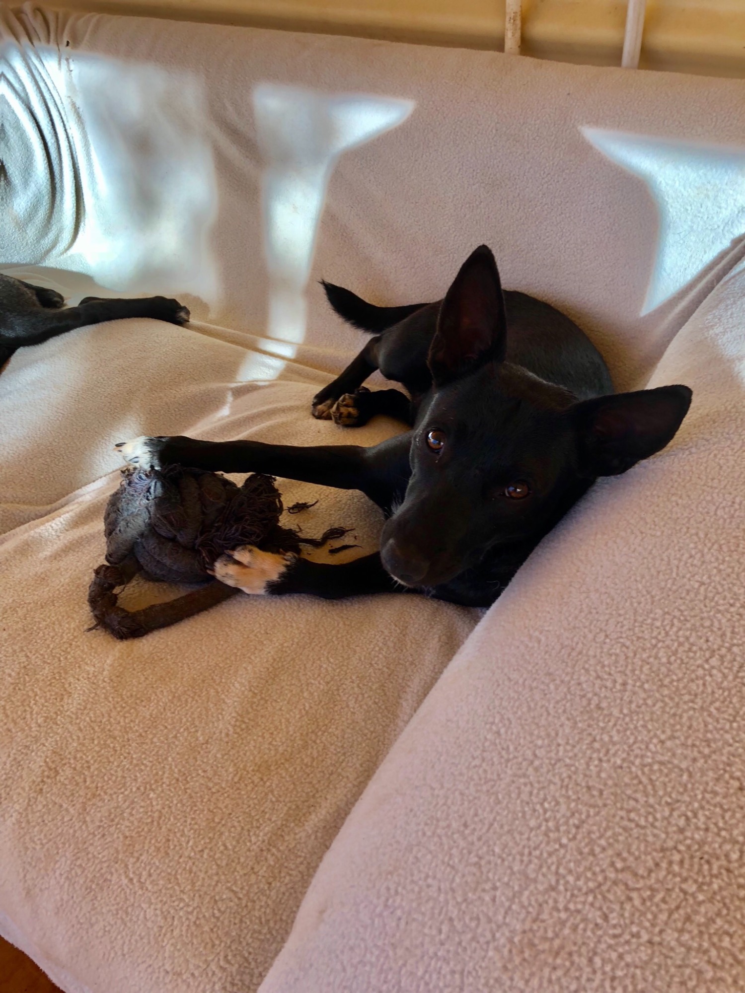 Captain is a great little dog. Though small in stature she is big in personality. She loves to be in the thick of the action, and would be a great dog for the beach or the dog park, where she can run around like mad and play chasey and play-fights with other dogs. She is a good girl with recall and wants to please, so will be easy to train too. Her natural style is to just trot along with you. She just wants her own person to bond to and will be a very loyal companion.