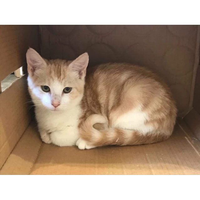 Her brother, Flame, is a soft ginger and white male with soulful eyes and total love bug potential. A gentle, shyer, boy who is an advocate for kitty equal rights and lets his sisters wear the trousers. He is a bit wary of hooman hands but is learning to enjoy cuddles and definitely enjoys the comfort of a cosy lap. He has the loudest purr of the pair and provides a running commentary in squeak language as he explores new things to let you know what he is thinking. His natural enemy are slippers and they must be destroyed on sight, with no mercy for any toes within.