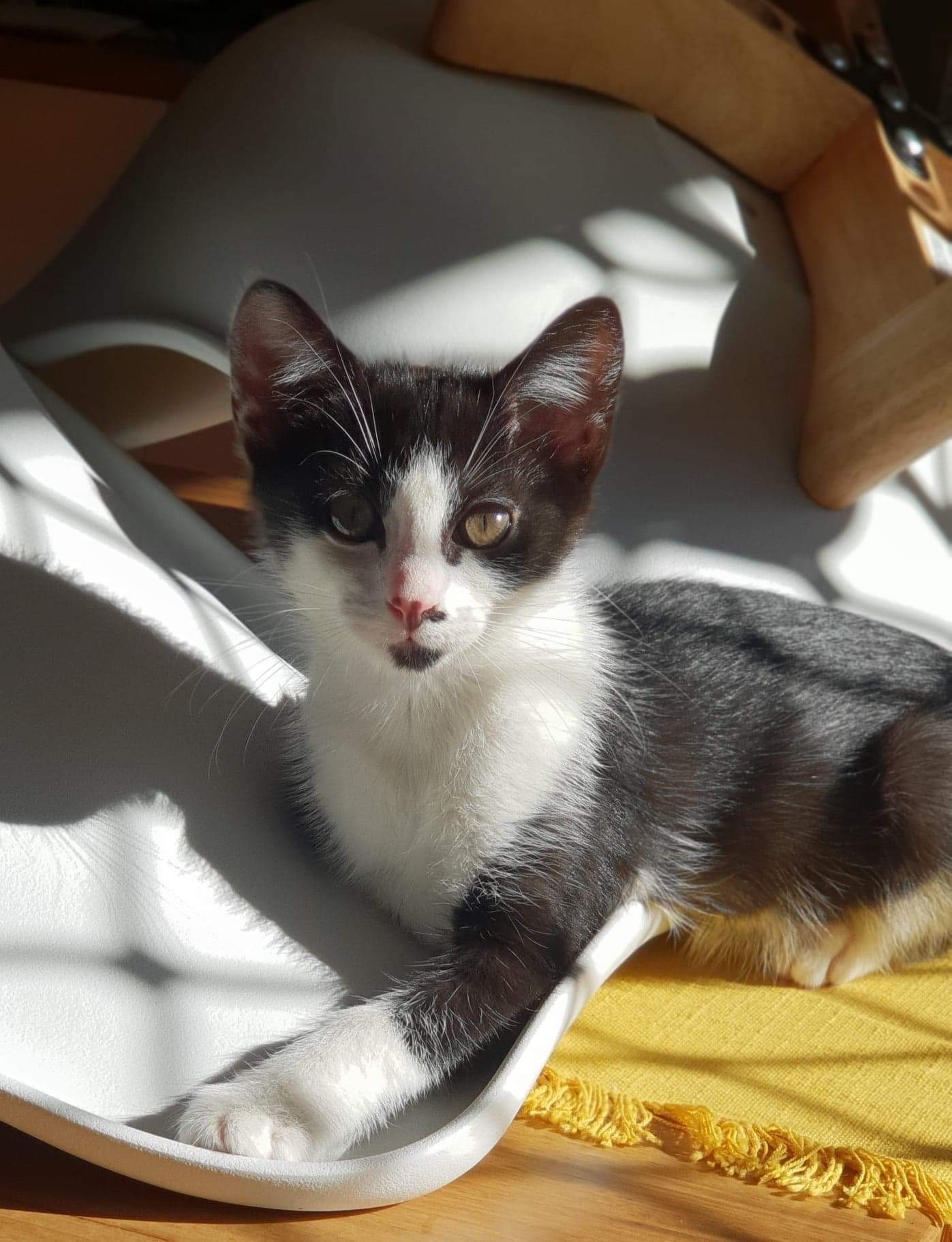 Nolan is the sweetest little lover out. He is quiet shy at first but given some time to bond and he has fast become his foster mum’s shadow. He LOVES cuddles and being close and will curl up high on your chest and purr himself to sleep. He is quiet submissive (until it comes to food) and rather chill. He even lets his foster dog brother lick his face until its saturated with no fight at all!