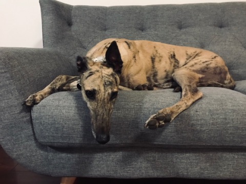 Afternoon crazies and squeaky toys are my thing. I'll throw them up in the air and chase them. I would enjoy having a secure yard to run around in and play with a similarly natured greyhound girl.