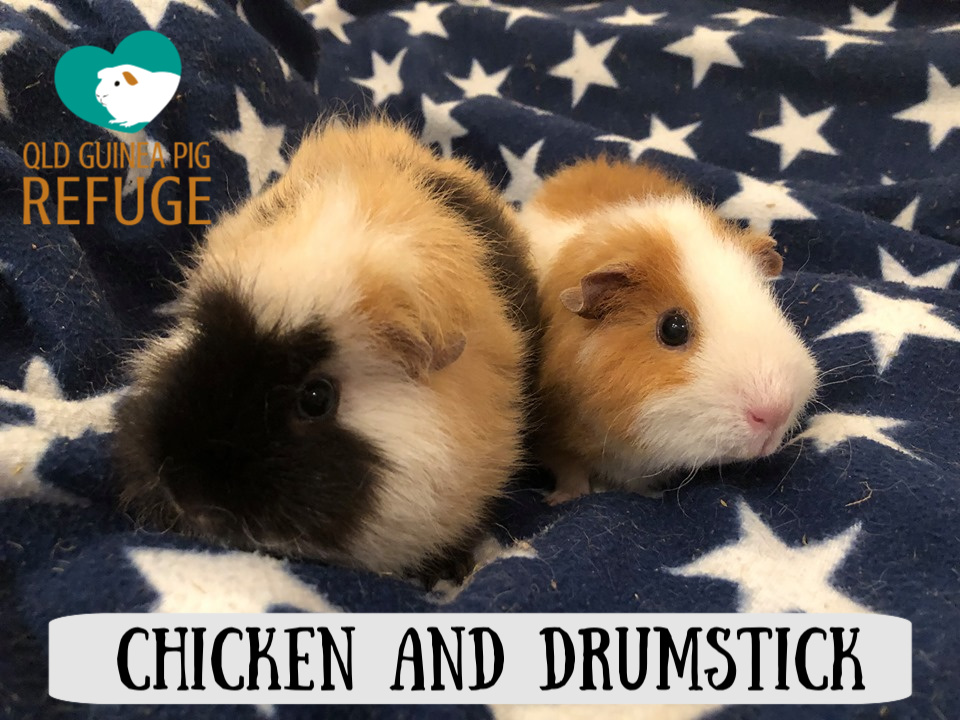 Chicken and Drumstick are a bonded pair, so must be adopted together. If you would like to adopt these beautiful girls, please apply at http://www.qldguineapigrefuge.com.au/guinea-pig-adoption.html