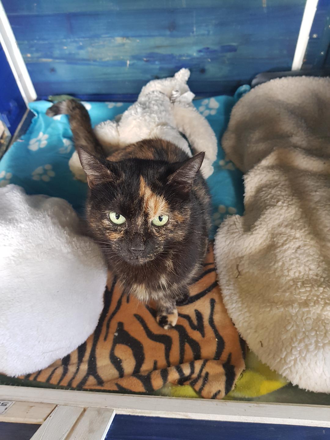 SHY 4 YR OLD TORTOISHELL FEMALE.CAN BE SHY AT TIMES ,LIKES AFFECTION BUT ON HER TERMS,