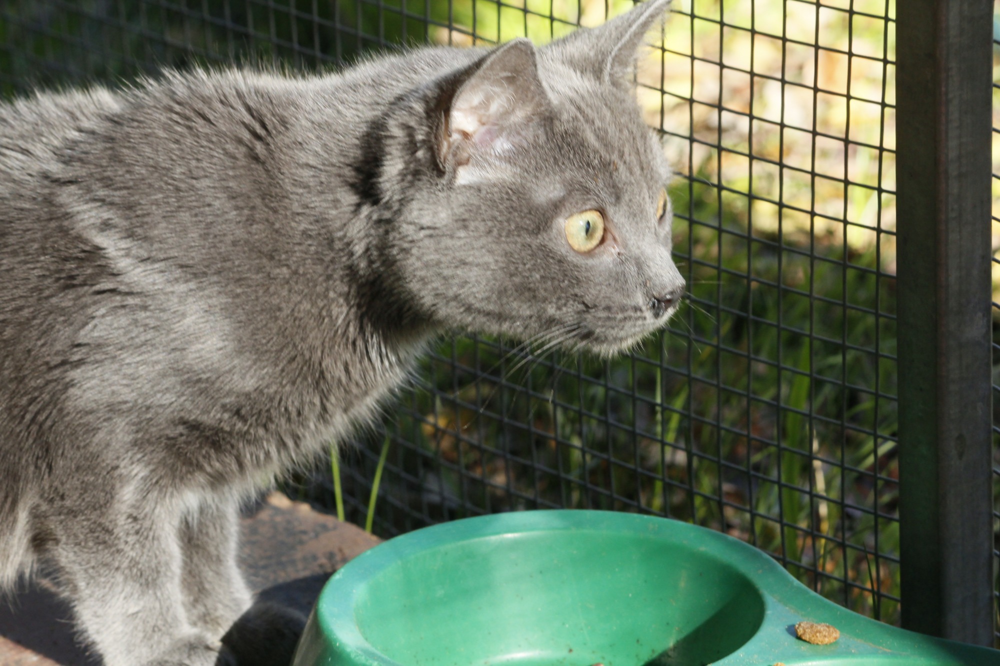 Jade is an adorable grey girl but had a bad start. She was dumped into the pound suffering an injury, her tail was cut off. No one knows how or why . She looks a little like a Manx kitten.