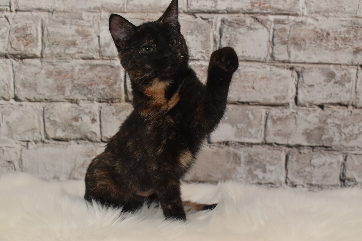 Faith is a talkative kitten that enjoys spending her days exploring new places. Her curiosity never fails. Faith enjoys the company of humans and other animals (including calm dogs) though she would be perfectly fine as an only pet. She is not one to turn down a friendly pat or chin scratch, and likes being picked up. Faith is known among her foster-family for her loud purr and love of food. At night she can be found curled up in a bed alongside her foster carers and foster brothers and sisters.