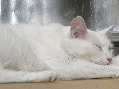 Snowball was transferred from bairnsdale pound were had been surrendered. He has proven to well adjusted with the adults cats in the cattery. Snowball also gets along very well with the kittens running around in the cattery