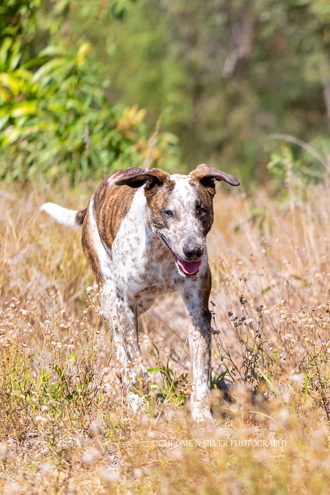 Beautiful Buddy, with his chocolate chip coat, is a super happy and very trainable boy. He's always bright and smiling and happy to be with you.