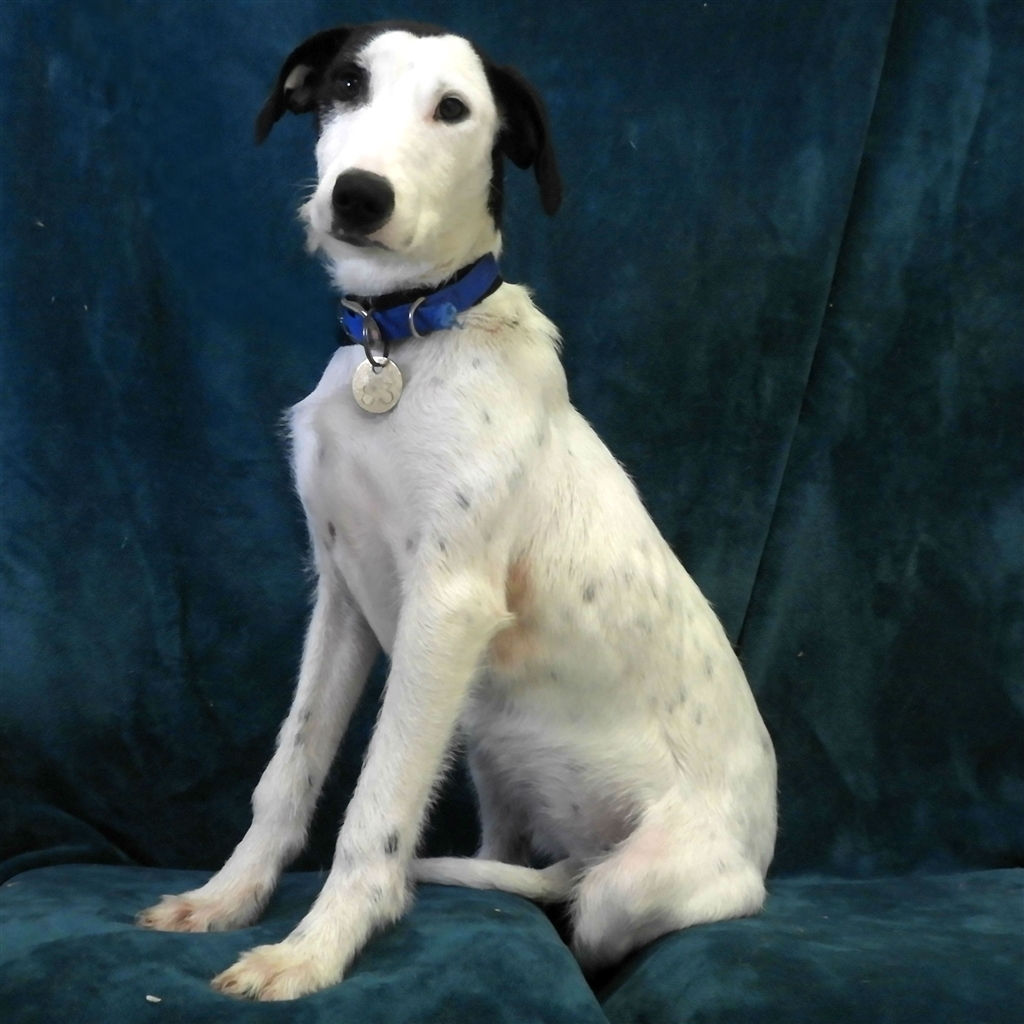 Terrific Tasha is so happy she greets you with a great tail wag. Like all young dogs, Tasha will benefit from obedience training, where she can socialize with other dogs and learn her doggie manners. Due to Tasha's light colouration she is prone to skin cancer and needs an owner who has a sun smart lifestyle. Tasha will need to be kept in the shade or indoors as much as possible in the summer months, and have pet safe sun screen applied to her nose and ears regularly. Being a Staghound/Wolfhound cross, Tasha is likely to grow in to a large sized dog, so she will require a home with secure fences, a large garden and plenty of things to do every day, including daily walks and runs.