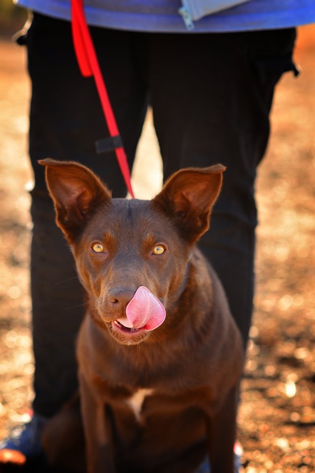 He would like his forever family to take him for a daily walk, and maybe enrol him in puppy school or obedience classes or the like.....something to keep his smart Kelpie brain active. Another dog to play with would be fantastic.