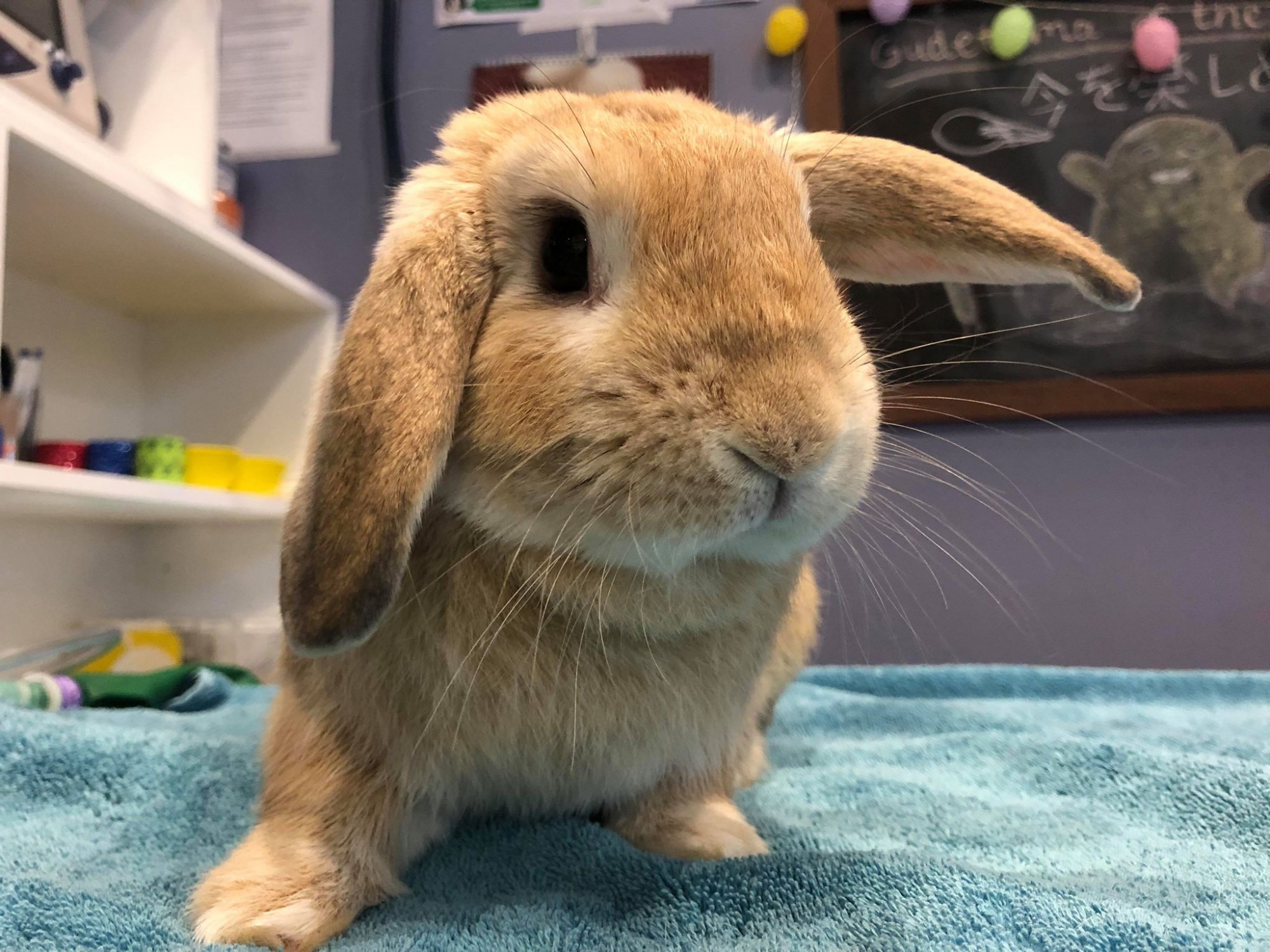 Pancake is a 1 year old Mini Lop X with helicopter ears!