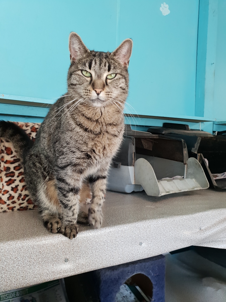 Miss Gidgi arrived as her owner could not keep her as his girlfriend is allergic to cats so we agreed to take her. She is so friendly, affectionate, loves cuddles and is absolutely fine with other cats. She likes living indoors, but as she is a good mouser needs a little time outside after she has gotten to know you. In this cold weather she loves to sit on window ledge to watch the world go by. She has been desexed immunised and chipped and is ready for her special new home. 900079000630587