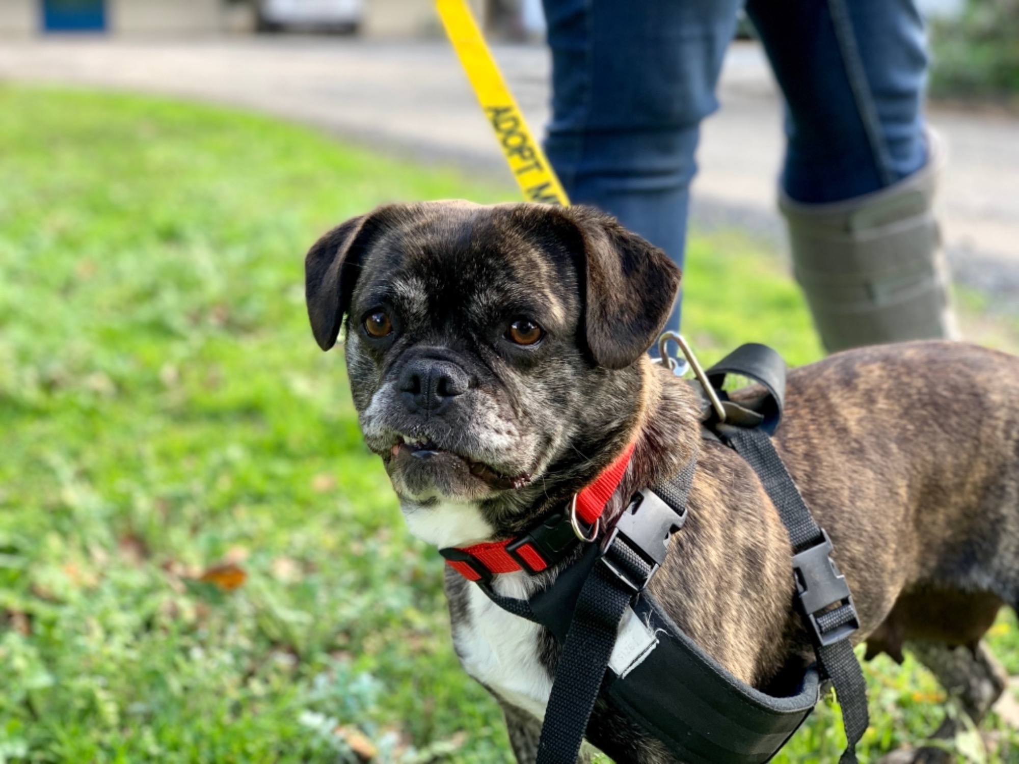 She is a big, happy goofball whose tail never stops wagging. She loves attention and cuddles and is more interested in spending time with humans rather than other dogs.