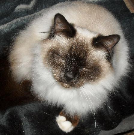 Zena is a sweet girl,loves people ,ok with other cats,loves to sleep on you at night,zena is used to being a indoor only kitty and as you can see,shy about showing her lovely blue eyes lol