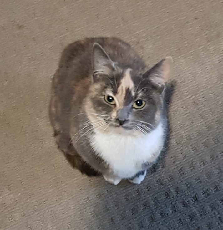 Siva is a stunning dilute tortoiseshell girl with gorgeous green eyes. She is a gentle and sweet girl who has a big appetite for such a small cat. Siva is learning to enjoy affection and being around her people, in particular she loves a tummy tickle. She is also learning that toys are fun and so is playing with other feline friends!
