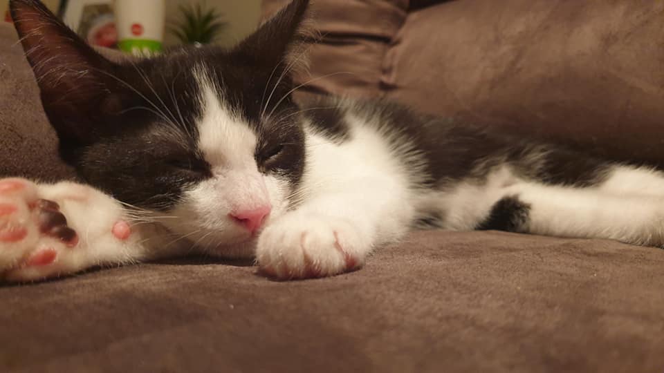 This guy loves everyone!! The dog, the older cat, the blind cat and the kitten. You'll always find him snuggled up to one of them, or cleaning one of them! He's a very relaxed boy but every now and then you'll see him dart around or play with the toys. He likes to be near you and will never turn away from a pat or two! Will be a great addition to any family this Christmas time.