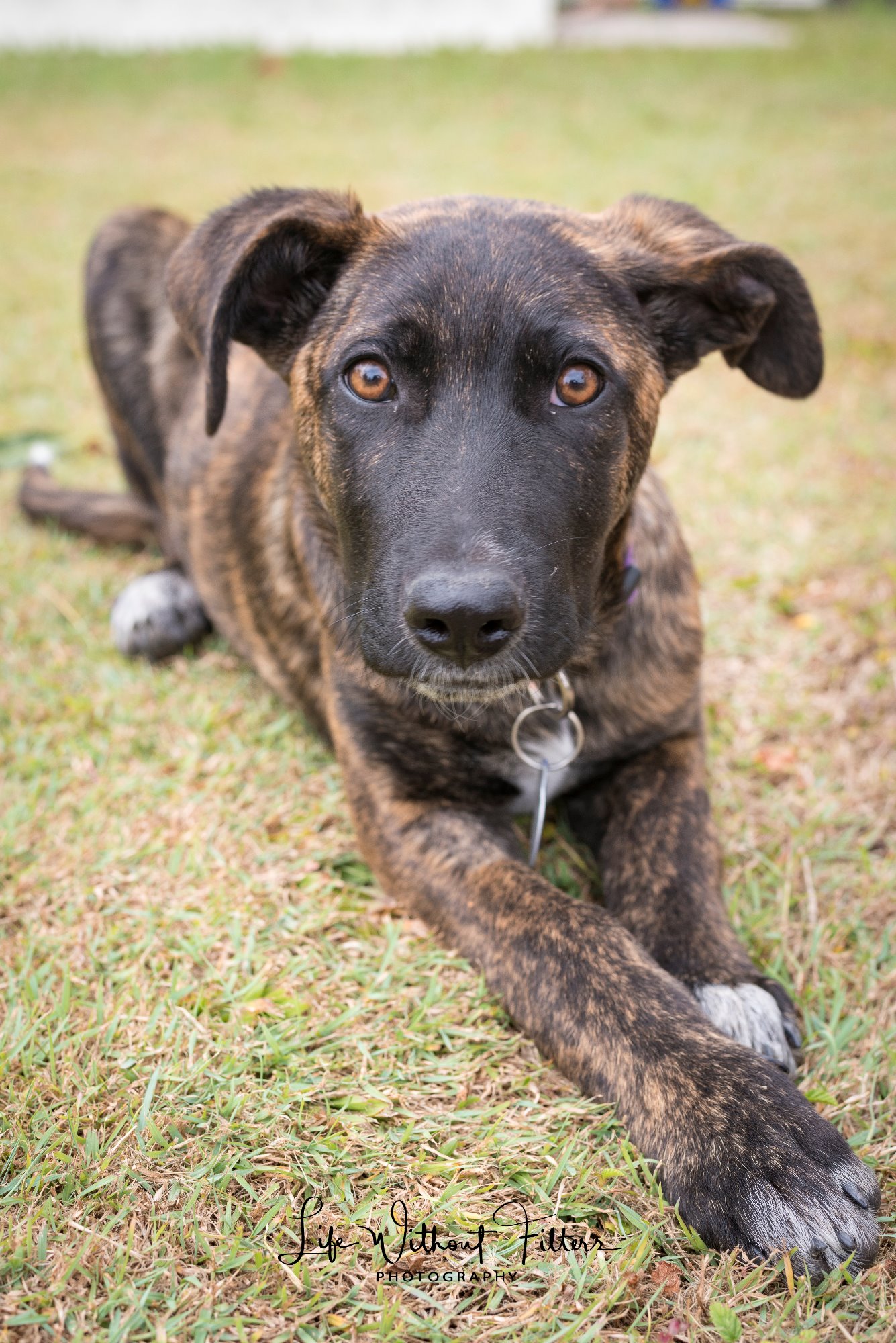 Junior is shy at first but loves people. When you get to know him he is very relaxed. He is intelligent and responds well to training. He is great with other dogs and young children. Based on the size of his paws he will be a big dog.