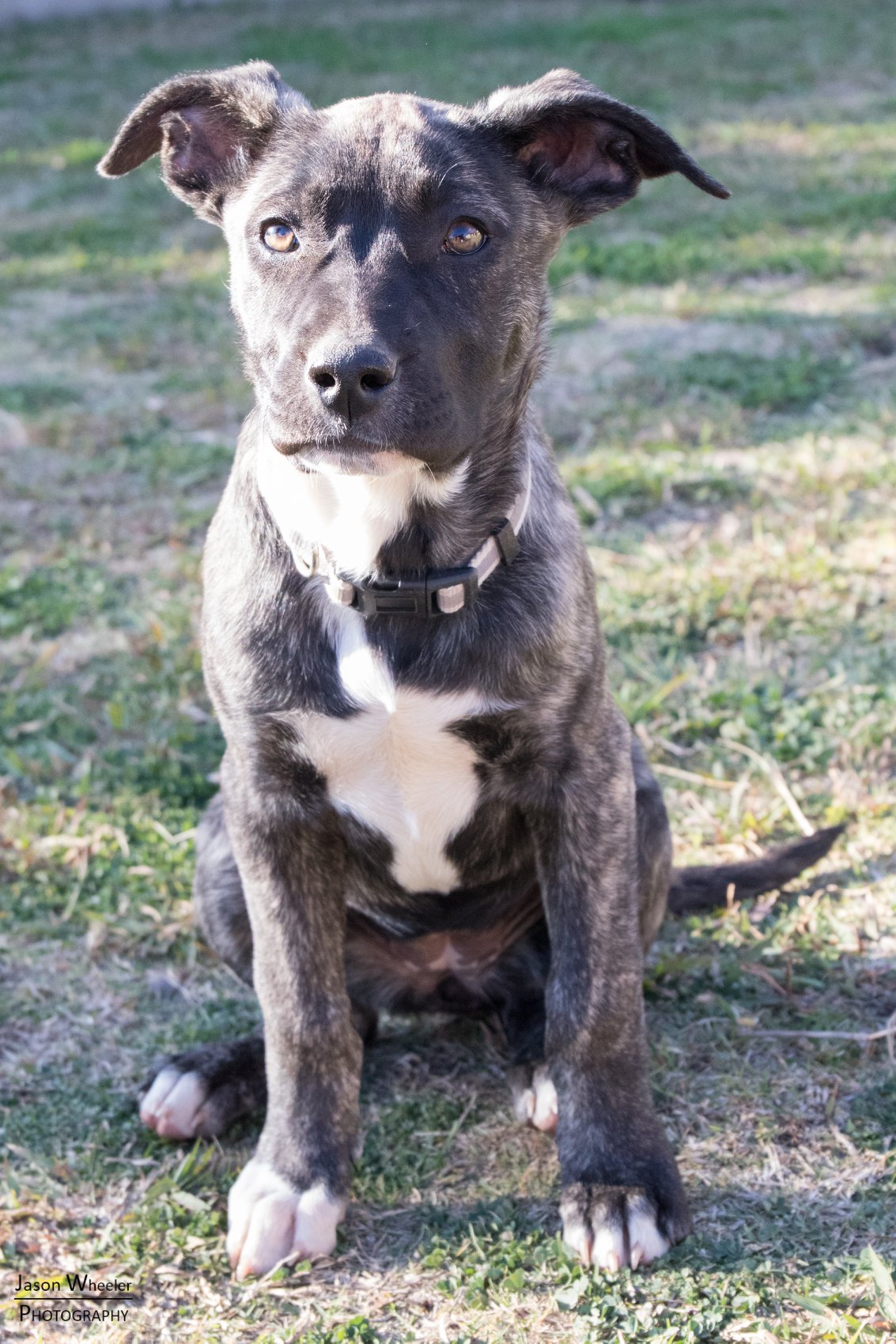 Hi everyone! My name is Sansa and I am just as sweet as I look! I get along great with other dogs, and currently live with two others, and a sibling. I also live with a human child who is my best pal, and I like both the male and female adults in the house. I sleep outside on the patio at night, and barely make a peep. I wait patiently at the door and won't barge in. I have picked up my basics training really quickly, and am a very bright girl. We aren't entirely sure what my dad was, but mum was a mastiff x bandog. I am estimated to reach 30kg as an adult. I eat a normal puppy biscuit, and have great manners around food. My ideal home will continue my basic training, take me out a few times a week for a walk or dog park play sesh, and help me be my best bright happy self!