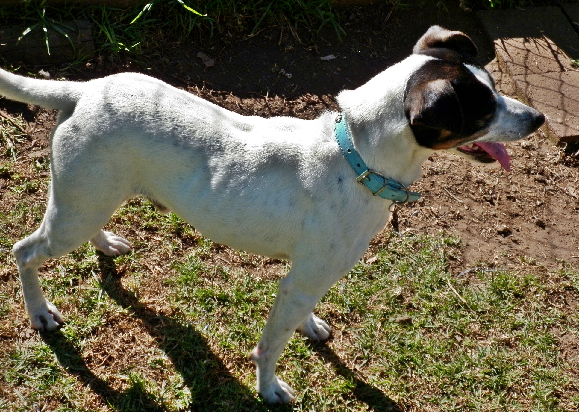 Sprout is a taller smooth coat tricolour male aged 3yrs.