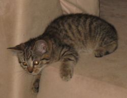 Vampie hasn't had the best start in life she was one of six stray kittens who were found living it tough on the street. Since being in care she has improved greatly and now is ready to find her forever home. Vampie is a typical kitten with a huge personality she is always playing and getting up to mischief were ever she can. She is an affectionate and loving little kitten (once you can stop her playing!) she gets on great with other cats so would prefer another feline friend to play with at her new home