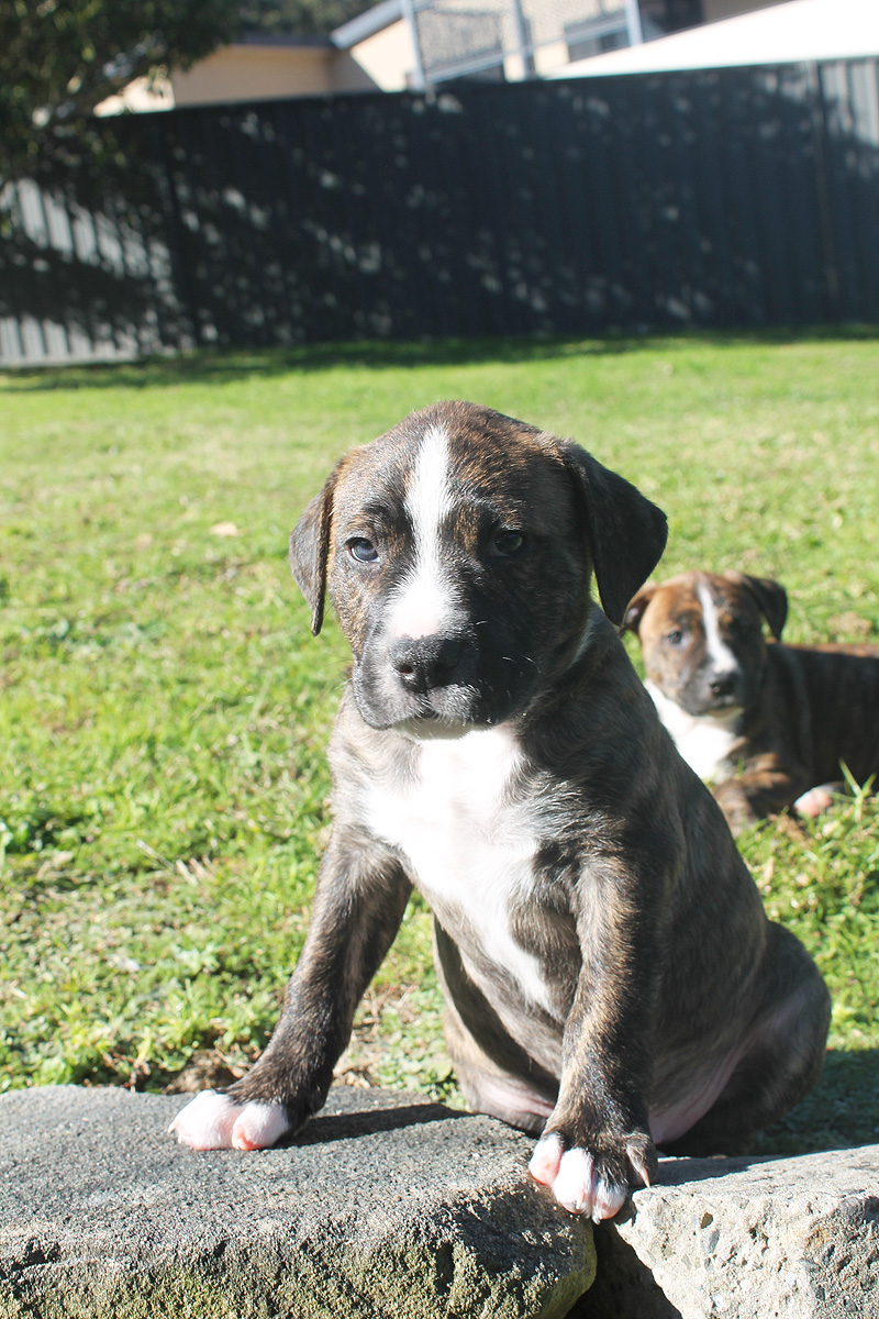 Meet Rafael, an 8 week old Staffy X Mastiff puppy. This guy is the King of Chill, he loves his food and naps. Being a spooky and affectionate boy he will always look for a spare cuddle if you have one. But don't be fooled, when he's done with the cuddles is off exploring in the garden, he is quite independent.