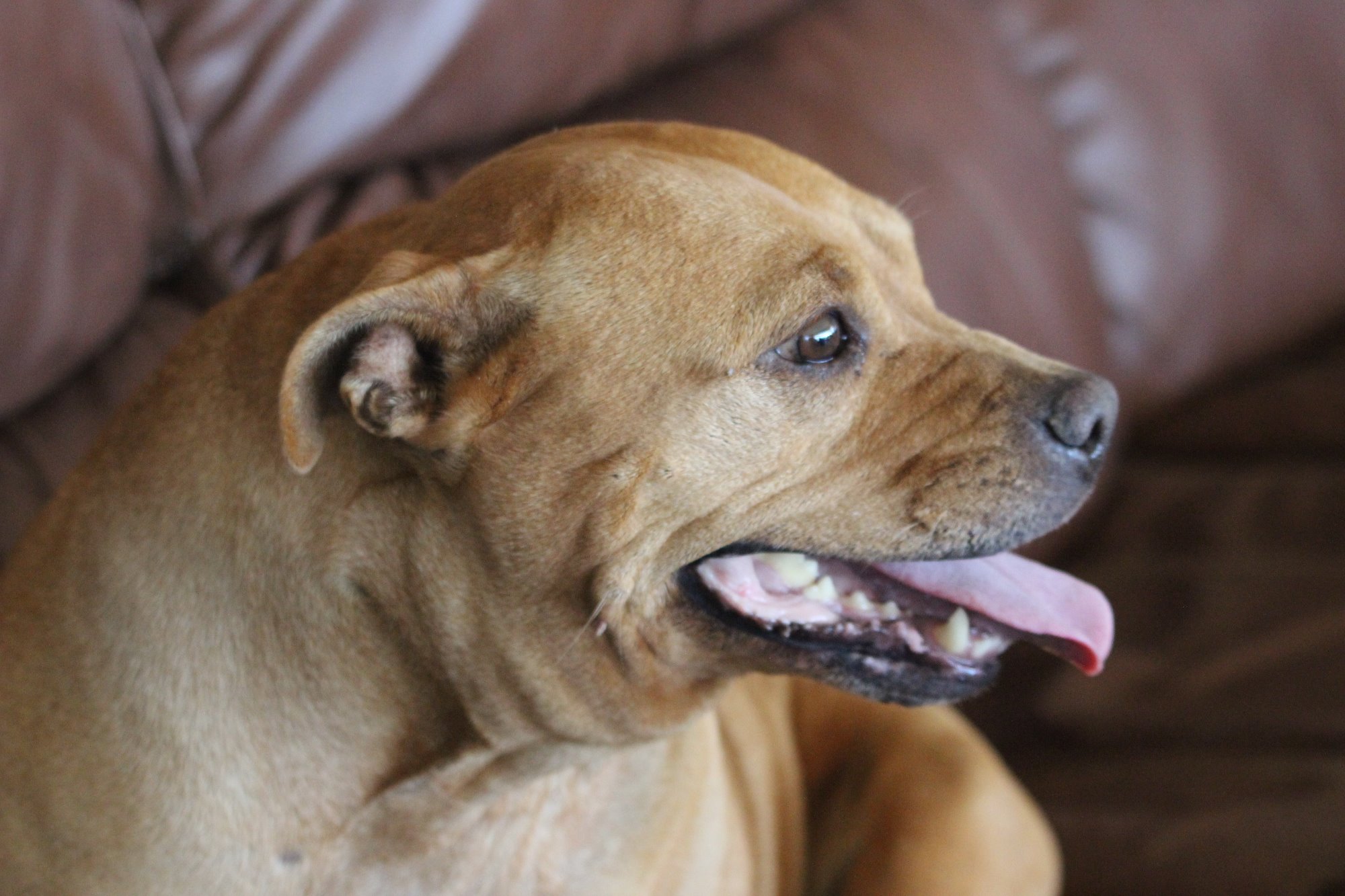 She just needs someone who understands the staffy temperament, someone who will give her time and some love and she will make a very loyal companion.