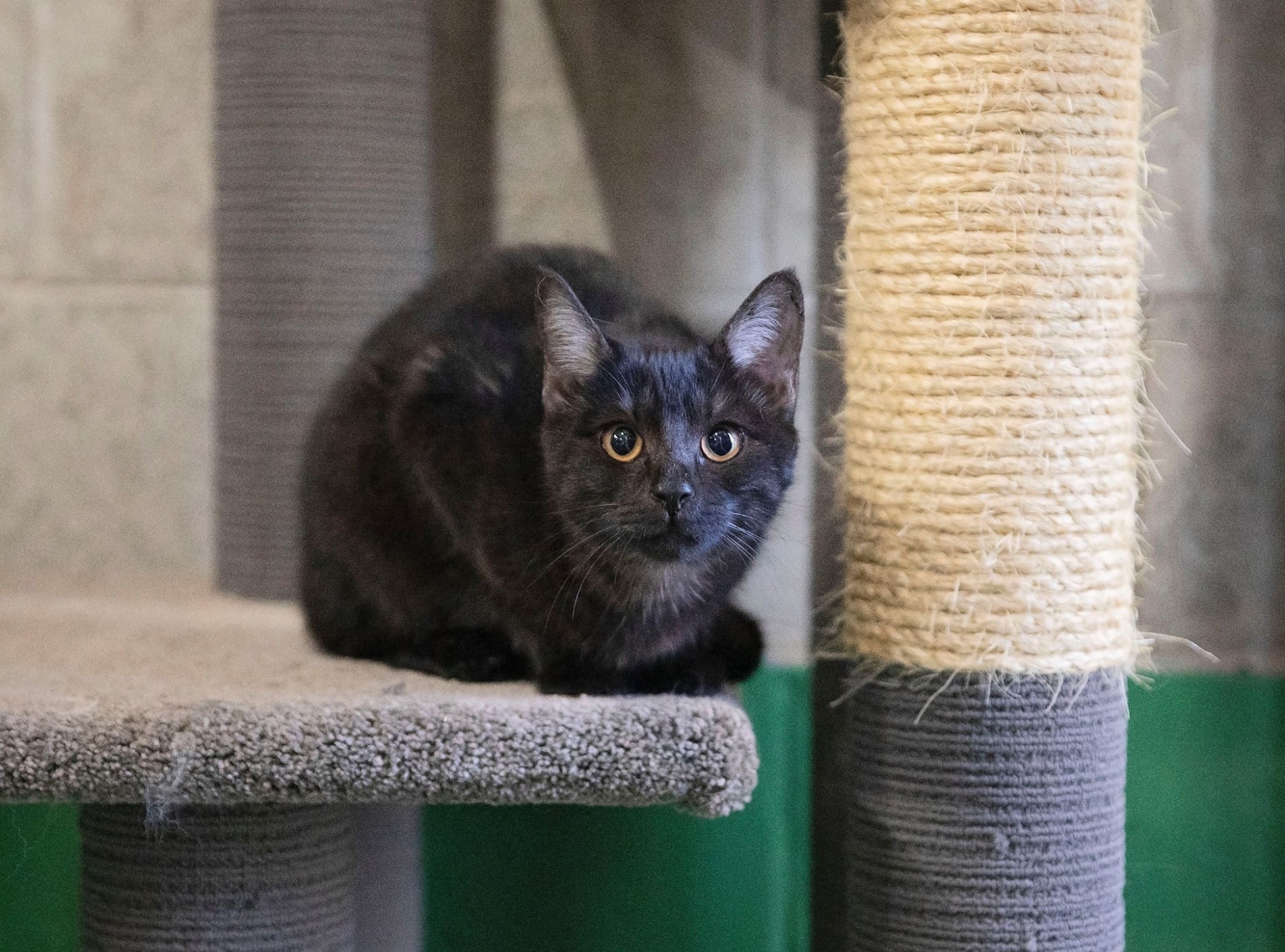 Chilli is a gentle kitten looking for a loving home. Chilli loves playing with her toys and exploring empty boxes. Chilli has a striking black smoke coat that makes her just a little bit more special than the rest. Chilli has the sweetest nature and although a little shy loves nothing more than playing with her toys with her human friends or chilling out watching a bit of TV. Chilli is still a very young kitten and this is a great time to bond with a kitten and gain a friend for life.