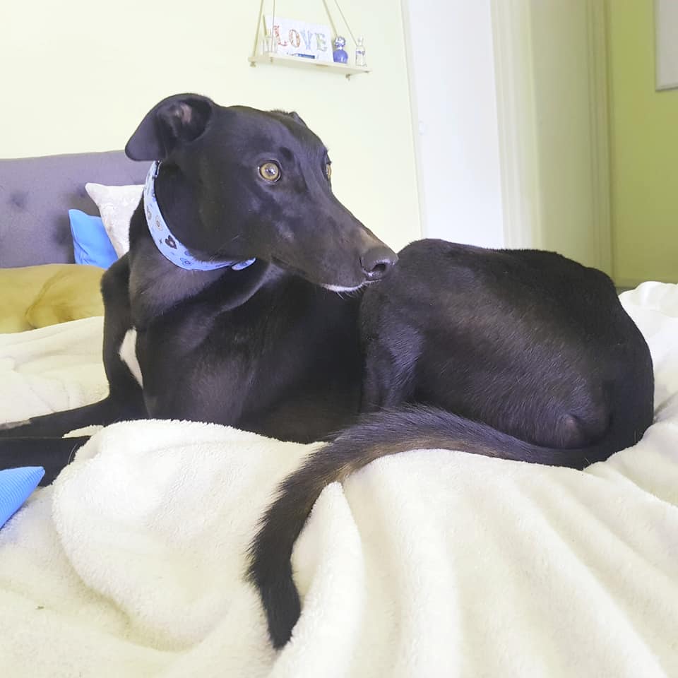 I am currently in foster care with two greyhounds, a male and a female and indoor cats. My foster folk have described me as 'curious, calm, happy-go-lucky' and quickly adaptable to new environments. My ideal home must have another greyhound buddy, humans who work part-time (shift-work, freelance or retirees all apply within). I require pawrents who are willing to continue my training, socialisation and include me in all their adventures.