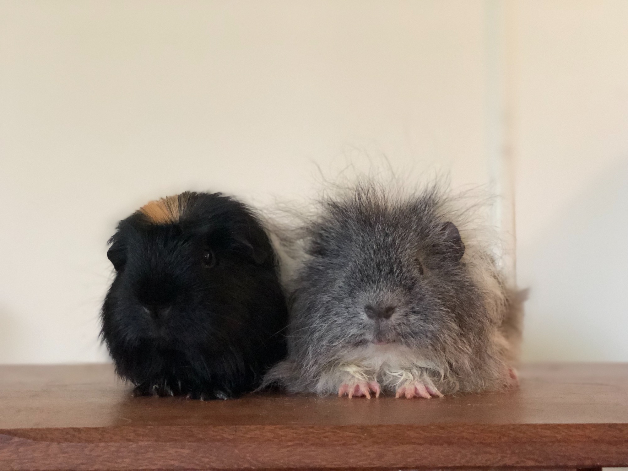 Skippy is the black short-haired guinea pig and Koala is the grey and white texel