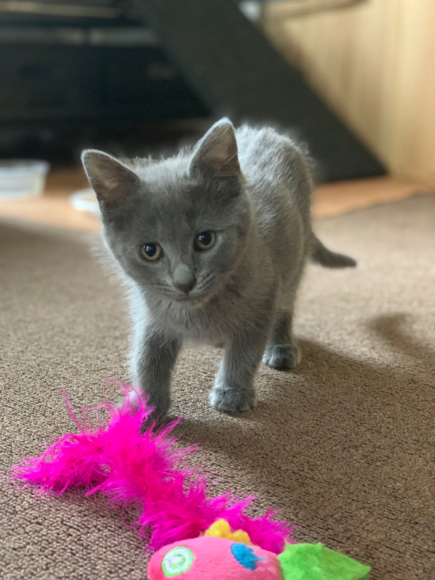 Maddy came into care at about 5 weeks of age and has since grown into a very confident, inquisitive little girl. Maddy loves playing with her sisters and her host cats, so a home with a kitty companion would be ideal.
