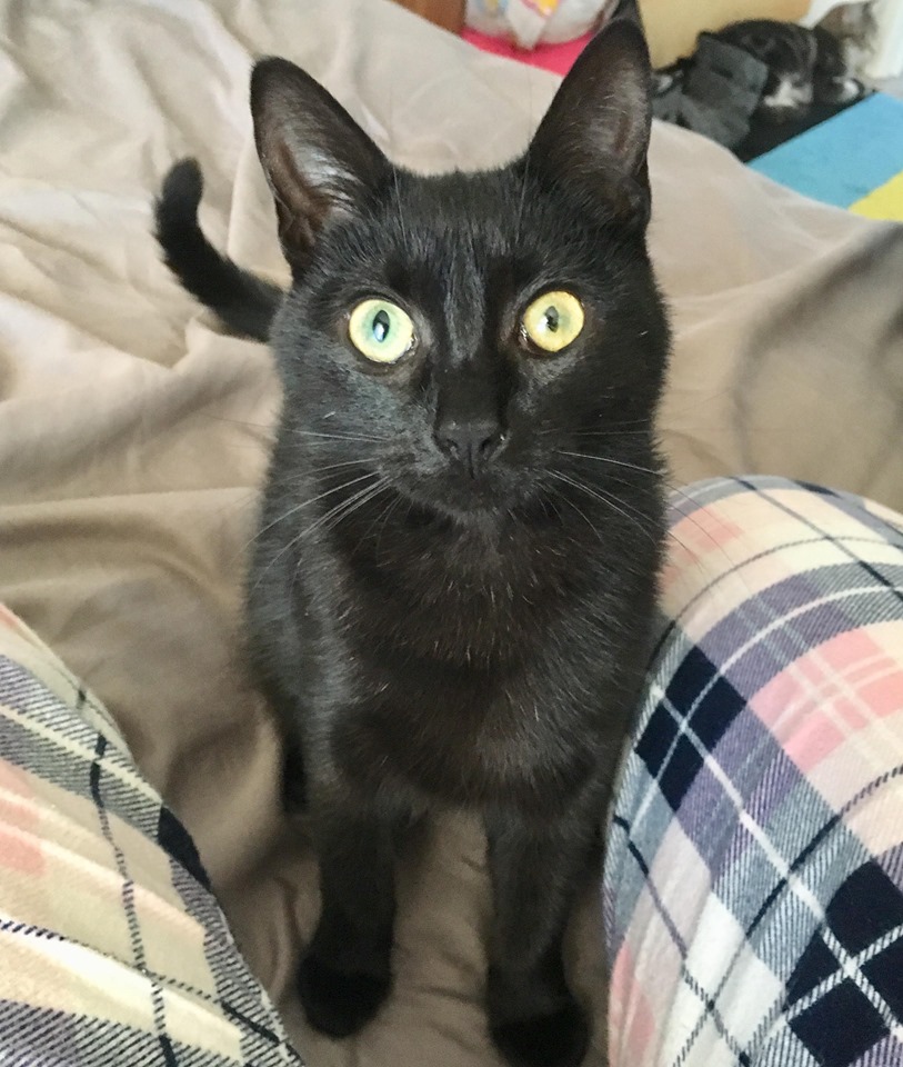 Bindi is the cuddliest kitten you’ll ever meet! She loves human company and is a lap cat through and through. She loves nothing more than being on your lap (or your chest if you’re lying down) or cuddled next to you and getting pats and scratches. She’ll follow you around and squeak at you to get attention (she has the cutest high-pitched meow!). She is top cat even though she’s the smallest and will bat the other kittens on the head if they come too close (particularly when they’re trying to compete for the humans’ attention!).