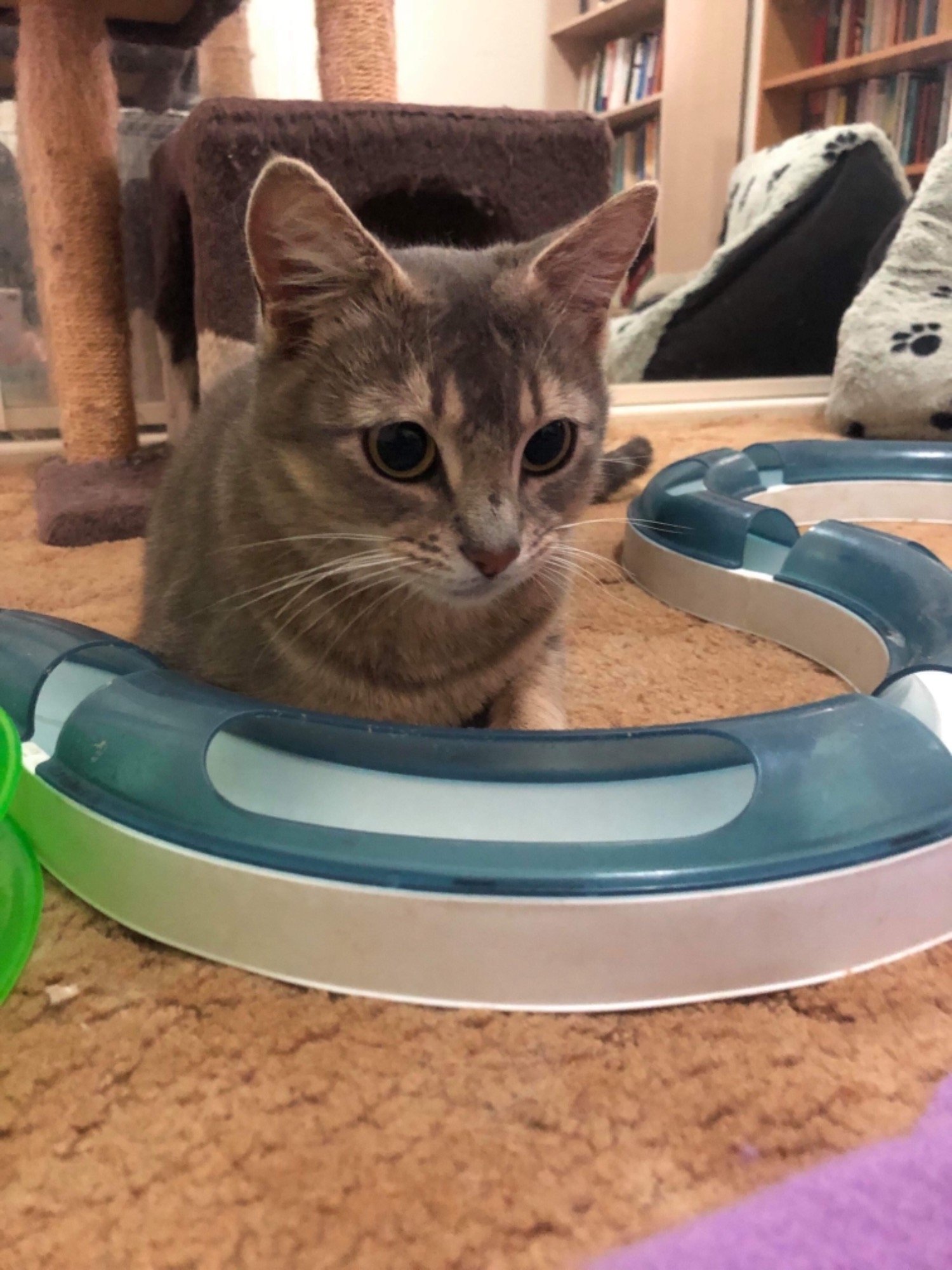 Misty headbutts for pats and will curl up on your lap, chest, face... she doesn't mind as long as she's close to you! She also likes to follow you around and make sure you're having a great day!