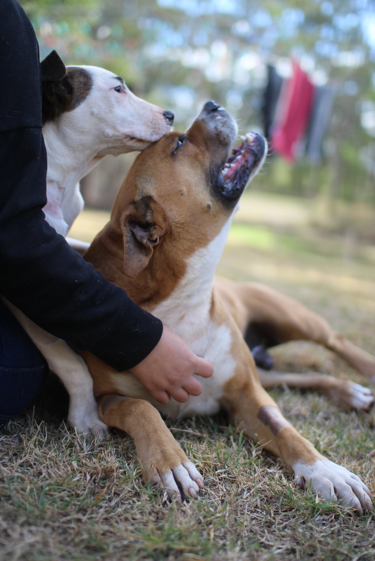 I live in a busy area and there are often people walking past with dogs and prams and I just sit quietly and watch them. I am very well mannered and quiet; as long as I'm having pats, that's all I need! I am fantastic with my 6yr old human friend, and would go great in a home with children. I love all humans but especially men - I'd be a great tradie dog! I just love to hang out with you, following you around and watching you. My exact breed mix is unknown, but we think maybe boxer x staffy.