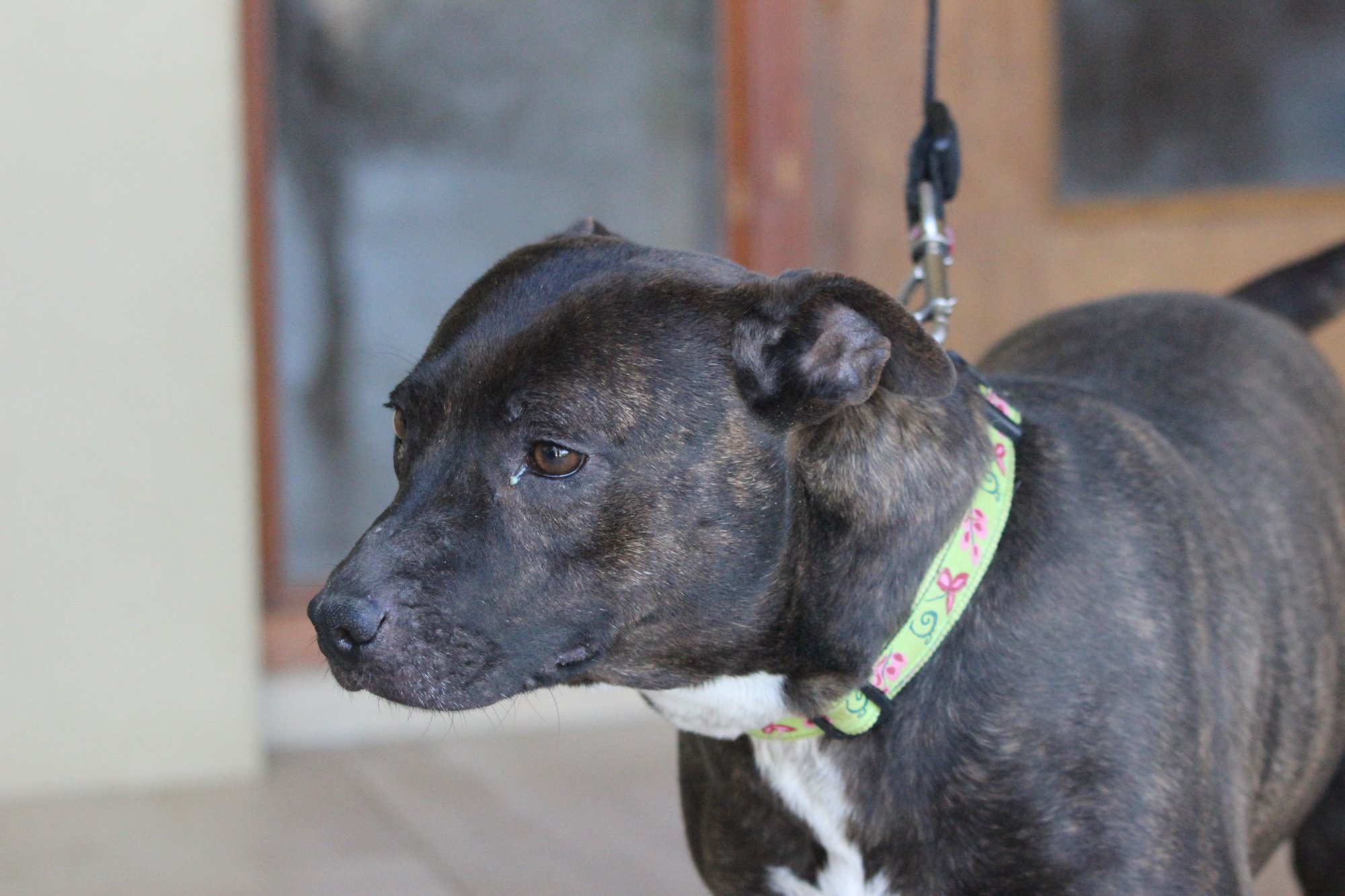 She is a great little staffy although not sure about cats even though there were cats where she came from.
