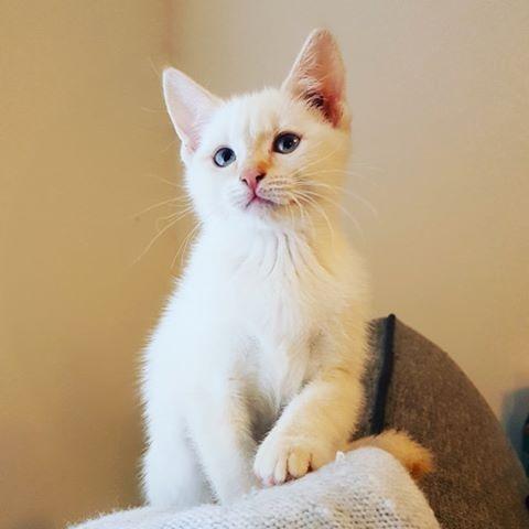 Because of her pale colouring it is absolutely essential that Pinky go to a strictly indoor-only home. She was born in foster care and has never been outside, so she won't have any issues living as an indoor-kitty.