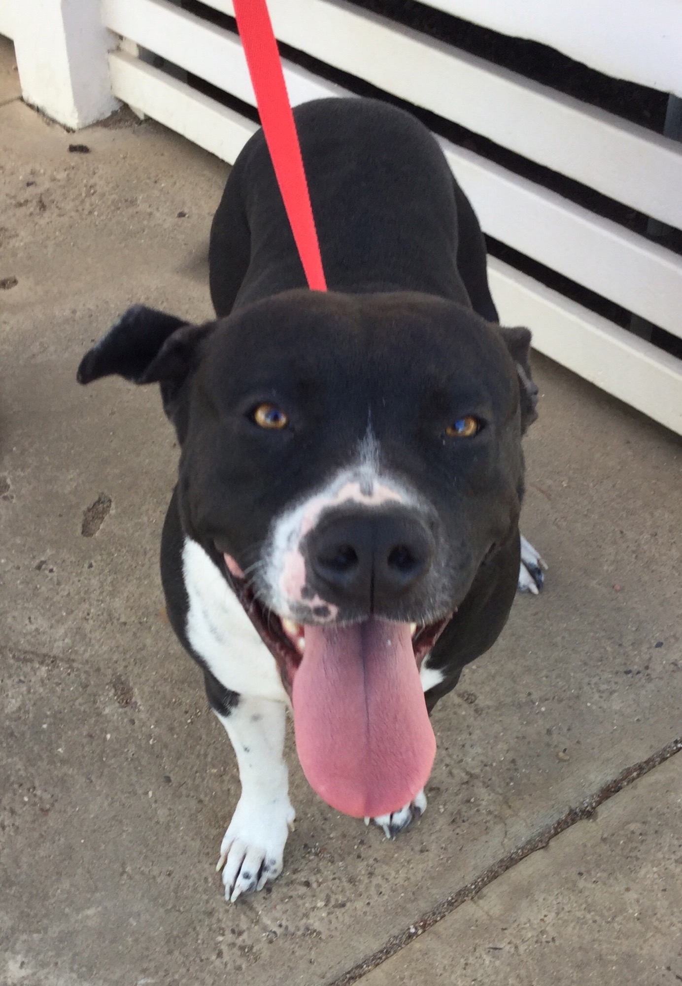 Nella is bigger than your average Staffy, weighing around 28 kilos.