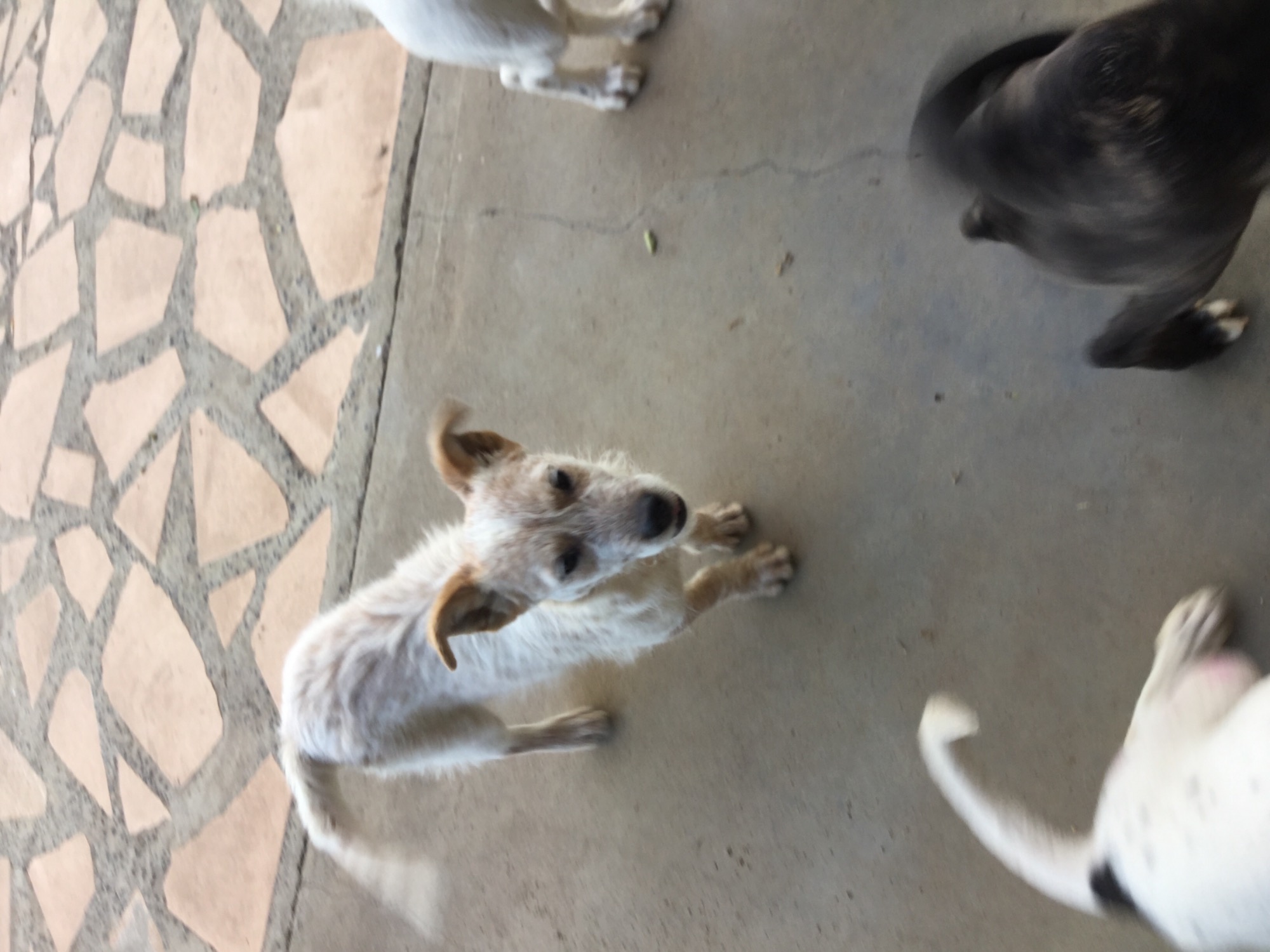 We think mum Maggie is a Cattle Dog mixed with a little bit of Wolfhound, being about cattle dog size with some of the hairiness (though softer coat) of the Wolfhound. She has a gloriously sweet temperament - a wonderful girl with other dogs and people alike, traits she has passed on to her daughters.