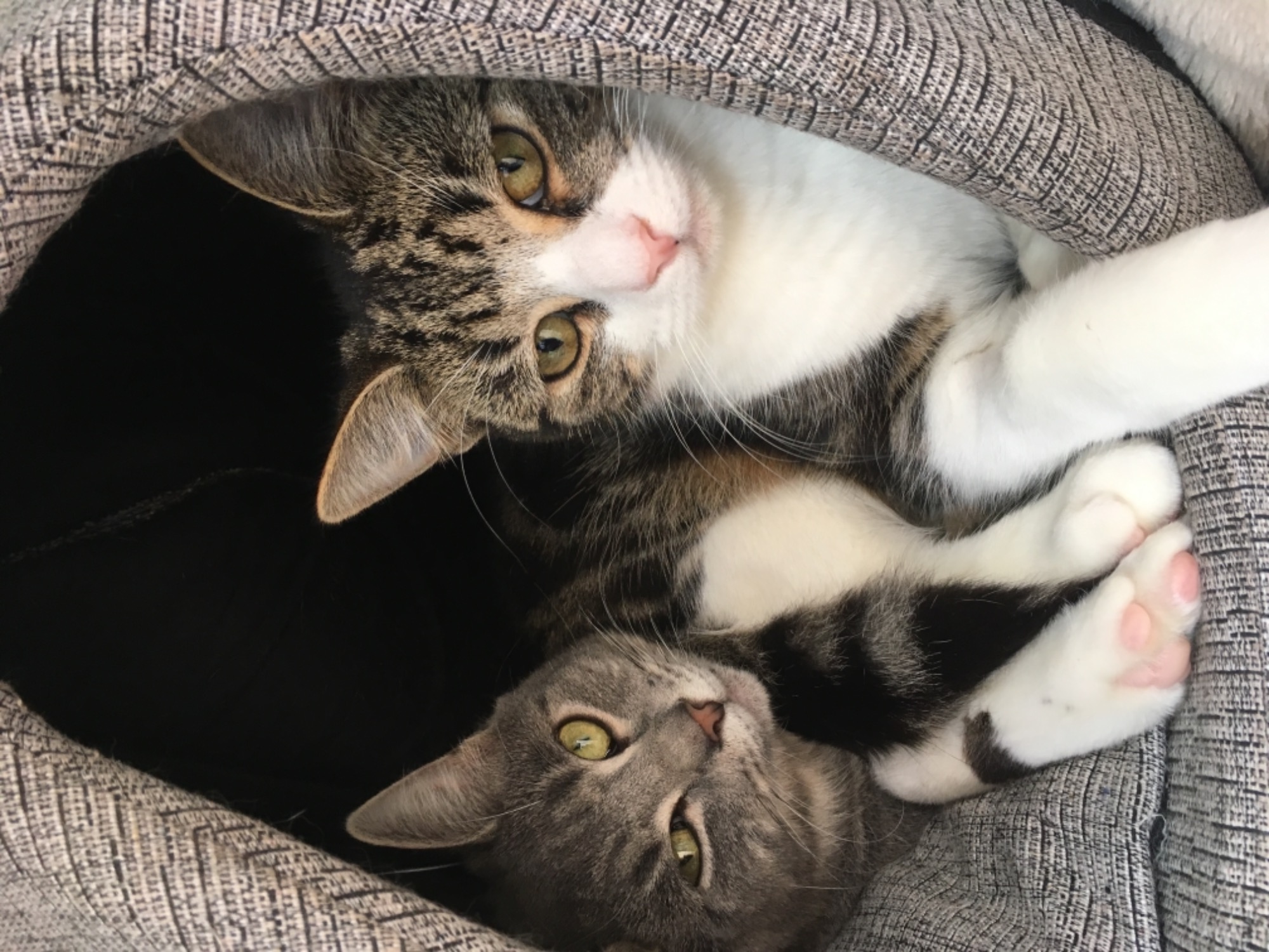 Mason and Major are 1 year old brothers. Both these boys are gentle placid kitties who love to snuggle and play together. They are becoming more outgoing everyday and are very curious about dogs. They are fine with other cats. Would be great if they could be homed together as they are best friends and would suit a household with older children. They can be inside outside cats.