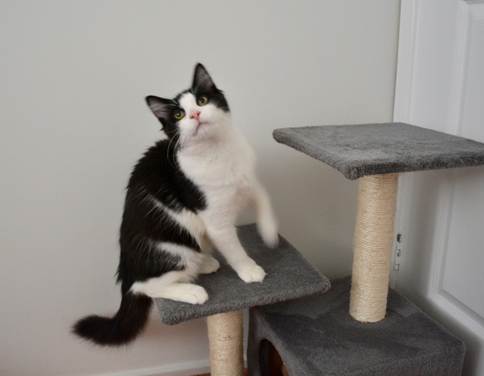Smokey is placid, and loves cuddles, but like his siblings Monique and Jack, playtime is top priority at the moment.