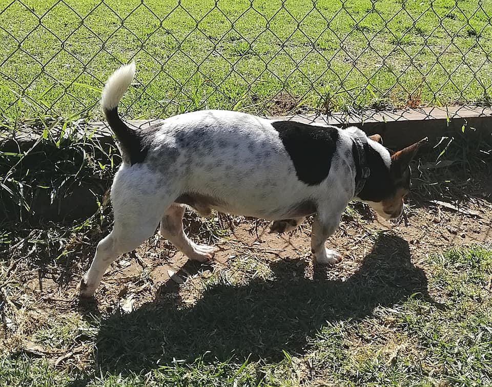 Gumnut is a solid and muscular, tricolour male JR mix aged 4yrs.