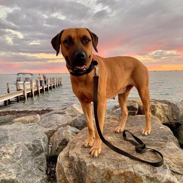 Hi, my name is Meg, and I'm a 2-3 Yr old Rhodesian Ridgeback x Mastiff (mixed breed). I have come from the streets of Broome, so I am used to being outside and am highly motivated by food, so I learn new things quickly. My favourite thing is going to the park to meet people and make lots of doggy friends to play with. I love all people, but might not be suited to homes with small children as I get excited when playing and forget how big and strong I am. I will need a confident owner who can be firm with enforcing boundaries.