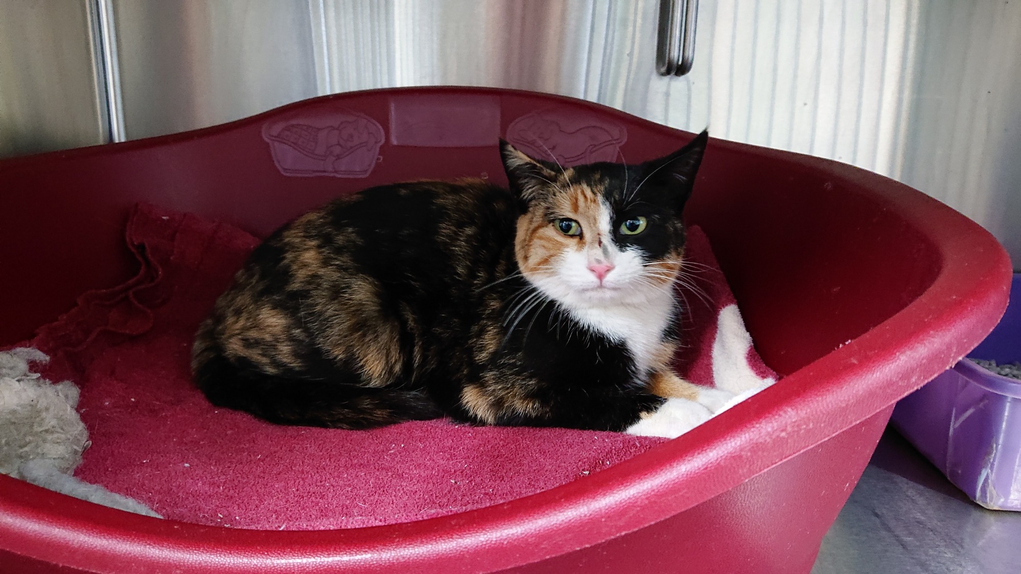 Smudge is sweet & snuggly little girl. She can be a bit shy at first but after a few minutes she will be purring and snuggling into your lap. She was found living on the street as a young kitten before she was bought in to us. She has settled in really well & gets along well with the other cats she is housed with & her tolerance for dogs is increasing.