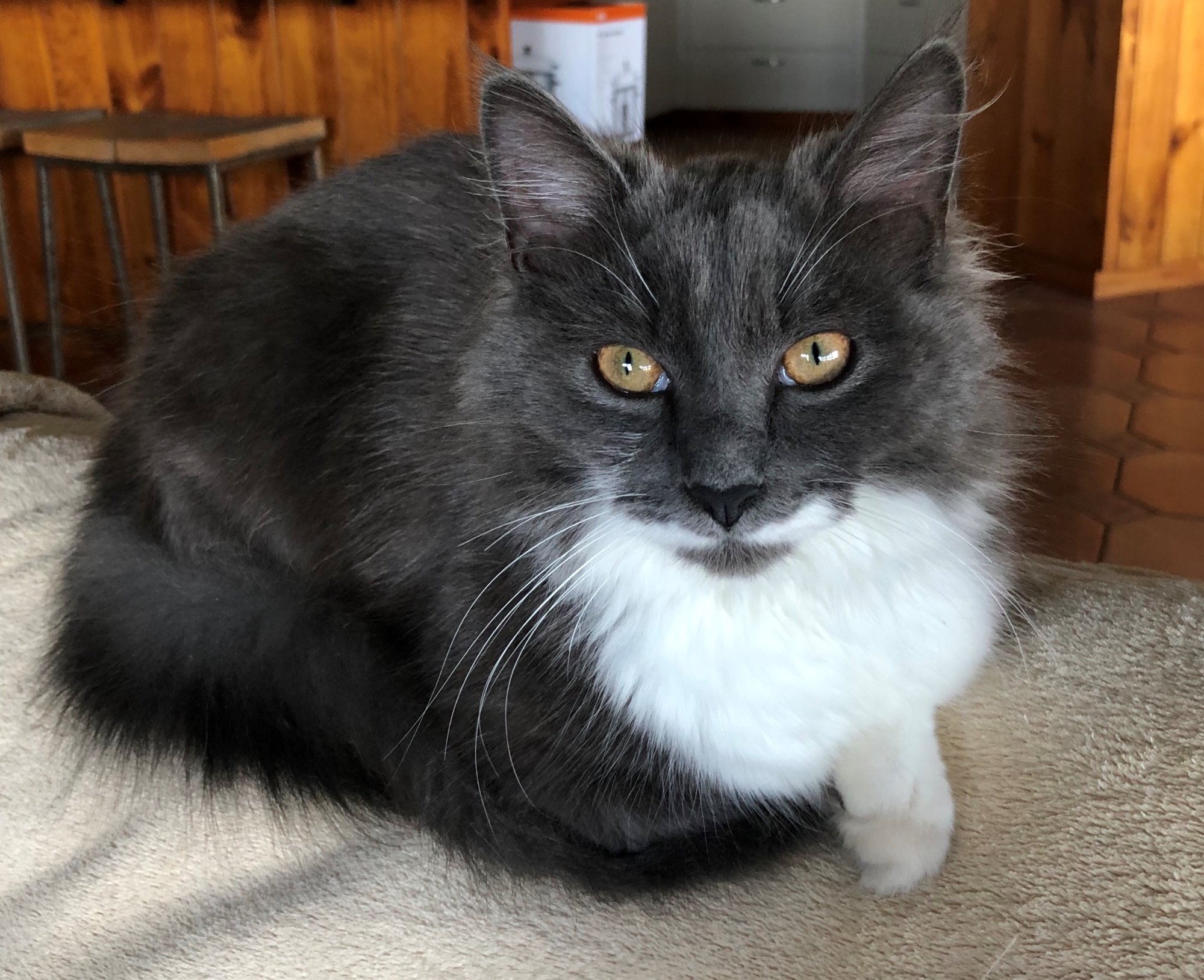 This fabulous boy is the most cuddly, affectionate, social boy you could wish to meet. He likes to snuggle with you, and keep you company. There is no disappearing under the bed for Fabio! He came to us as a stray via a vet clinic. He loves dogs but would be better as an only cat.