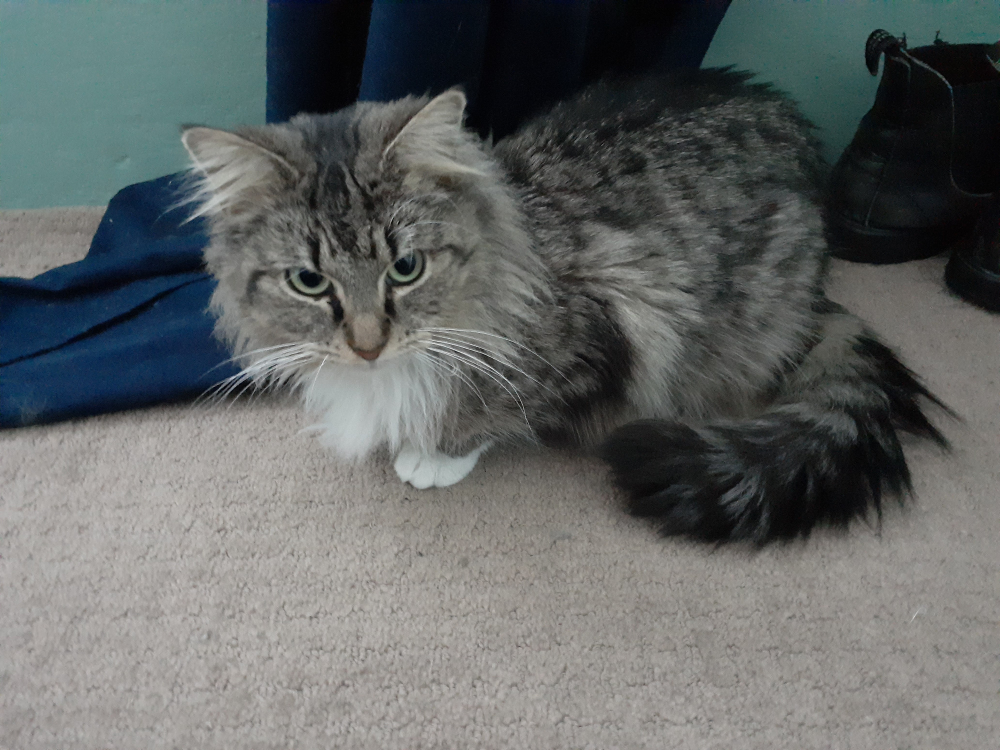 Maddie is a total sweetheart, and very affectionate with her human foster carers. She had a rough time before coming to us, and had at least two litters by the time she was about one year old. As a result, she will always be a bit small under all that fluff. She's a bit shy, but once she gets to know you, she will be very assertive about wanting the pets!