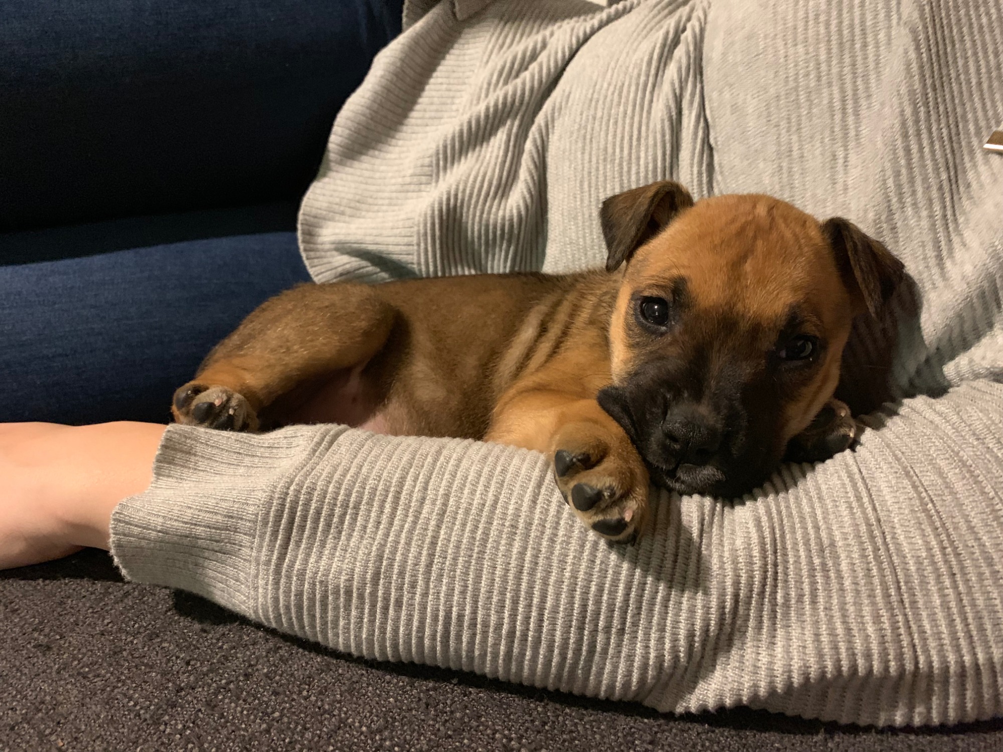 Meet Olive! Olive is an 8 week old, female, Mastiff x puppy. Olive is incredibly smart, out of her other two siblings she is the most confident one. Olive has a beautiful nature and will make a wonderful addition to any family. Olive is playful and outgoing, one of her favourite hobbies is wrestling with her sister. Olive also gets on well with her foster mum’s cat.