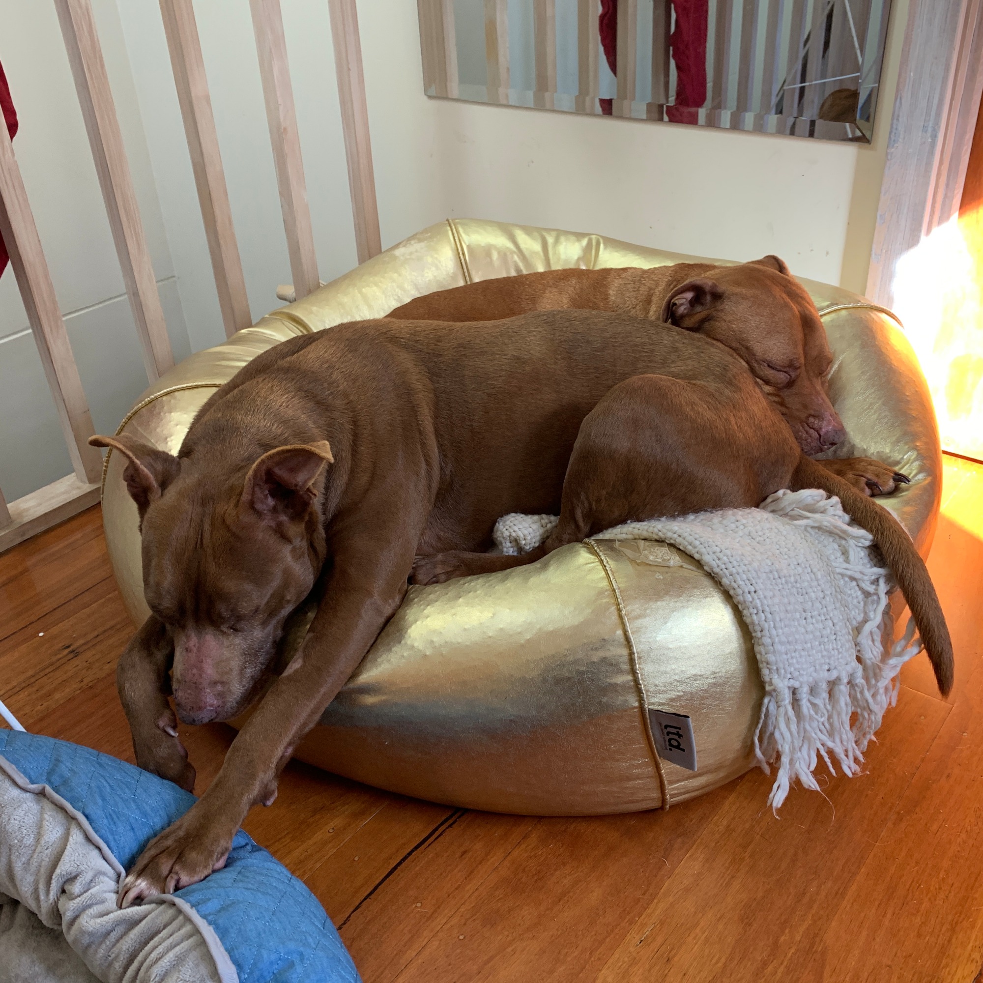 They are well behaved indoor, but love walks and playtime outdoor, so a house with access to a garden would be ideal. They walk fine on the lead, and can be walked by a single person! They're both quick learner and they learned how to sit, stay, go in their beds in a few days !!. They are ok with other dogs if introduced correctly but don't like cats.